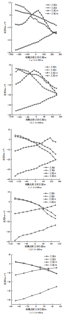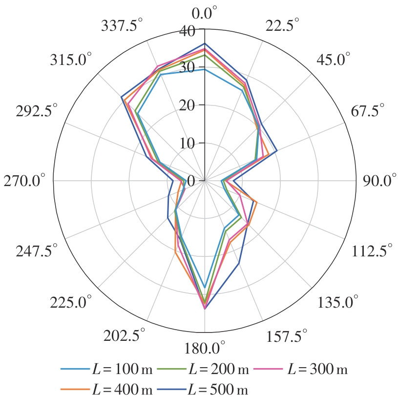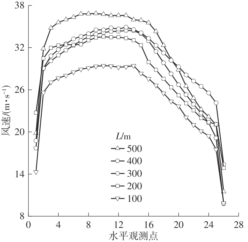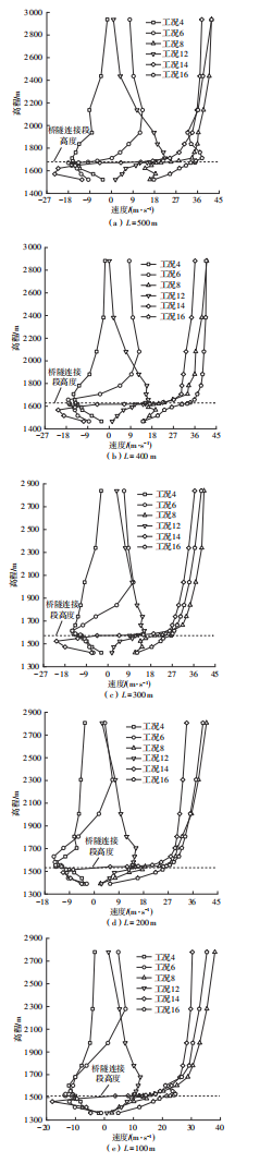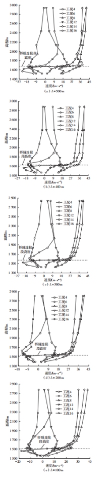 山区地形复杂多变,风场由此呈现出非定常、非平稳的特性,给桥隧连接段处行车安全带来巨大挑战。为研究复杂山区桥隧连接段风场空间特性变化规律,选取G318与S217交界处直径8 km范围内的山区地形为研究背景,获取研究区域地形的数字高程模型,采用逆向拟合方法建立5种长度桥隧连接段的山体模型。参照标准16方位风向图设置来流工况,利用数值模拟方法,得到不同来流工况下各桥隧连接段处的风场空间分布特性。结果表明,数值模拟结果与现场实测数据的误差基本在20%以内,数值模拟方法具有较高的准确性;在山体坡度近似不变的条件下,受实际复杂地形影响,不同长度的桥隧连接段处的横桥向风速、竖直风剖面与风攻角特性存在一定的差异,但总体趋势相近;来流垂直于桥隧连接段时,受到峡谷加速效应在跨中处风速达到最大,这种加速效应随着桥隧连接段长度的减小而增大,其余工况来流受两侧高陡山体的折减效应而减小,在顺桥隧连接段时风速最小;高陡山体与河道弯曲影响竖直方向横桥向风速分布,在高程较低的峡谷内部,桥隧连接段长度越短,影响越大;风攻角特性也受地形影响变化较大,总体表现出以负攻角为主。复杂山区桥隧连接段风场数值模拟研究得到的变化规律,可为桥隧连接段处的行车安全性研究提供一定的指导和参考作用。
