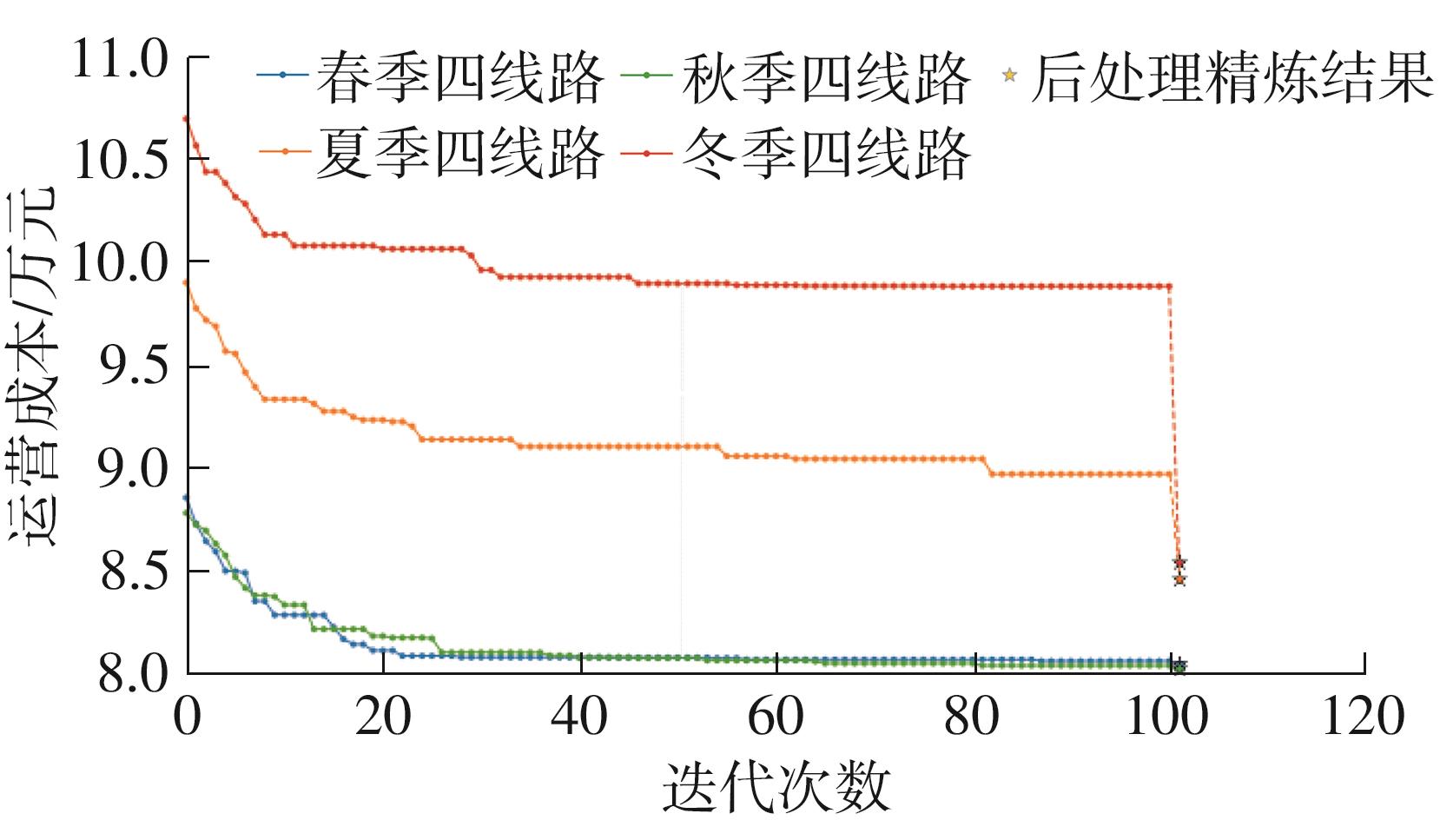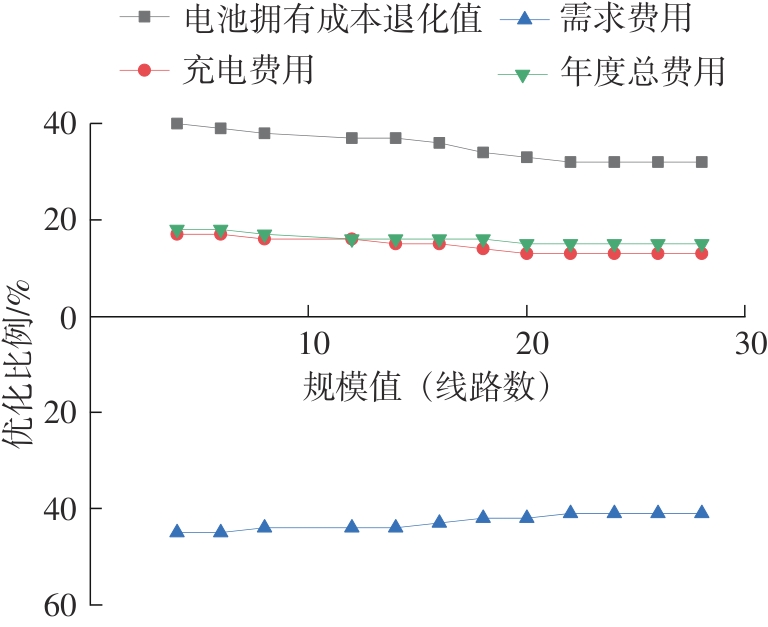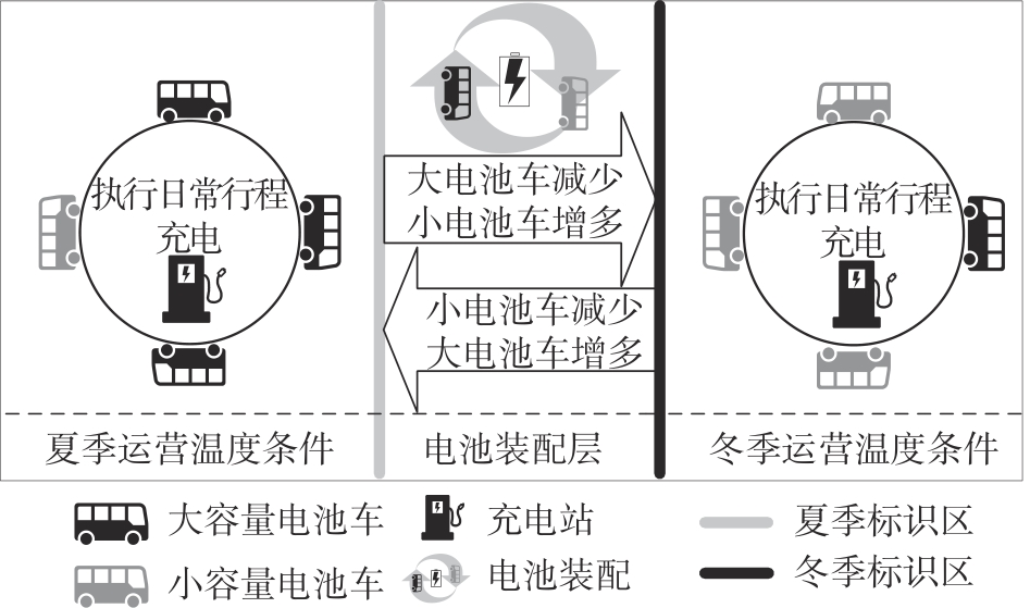 针对寒区电动公交在极端温差下出现的电池额外寿命衰减和续航里程变化大等问题,提出“电池-车辆匹配”集成调度策略。该策略根据季节温度与线路负载需求,为车队装配不同容量的电池来进行车辆调度,帮助公交运营商制定更优的运营方案。模型方面,以运营商成本最小化为目标建立混合整数规划模型,综合计算车辆电池购置费用、日均维护成本和考虑分时电价与需求费率的充电费用,量化了电池的循环退化和日历退化损耗,整合出一个综合的电池寿命退化函数放入成本计算中。算法方面,针对该NP-hard模型的求解,设计了一种混合遗传算法(HGA),其结合了后处理精炼策略,提升算法的求解效率。围绕哈尔滨实际公交路线进行研究,结果表明,优化后的年均摊总成本降低17.8%,所需车队规模减少16.4%,维护成本节约16.8%。比较明显的是,双电池配置使电池拥有成本的年均退化值降低39.7%,有效延长了电池资产的实际使用寿命。最终的敏感性分析显示,在春秋季等温度适宜季节适当放宽电池荷电状态上限,可以减少循环次数,从而更好地延缓电池老化。最后补充说明了模型在更大规模场景下的适用性。该研究为寒冷地区电动公交的可持续运营提供了理论模型与优化工具,对运营商制定季节性运营策略具有重要作用。