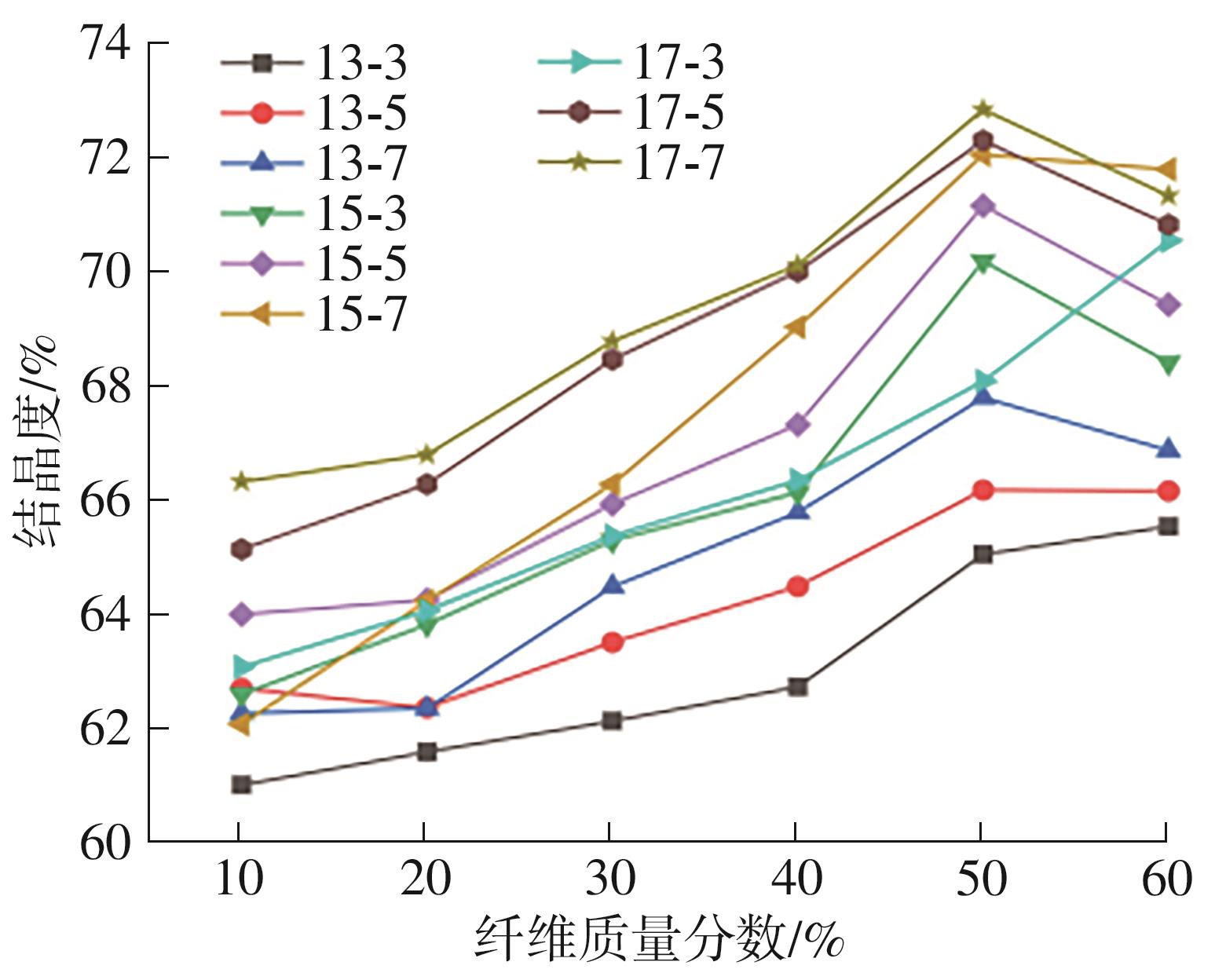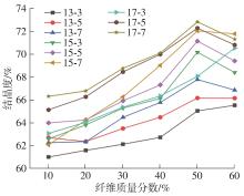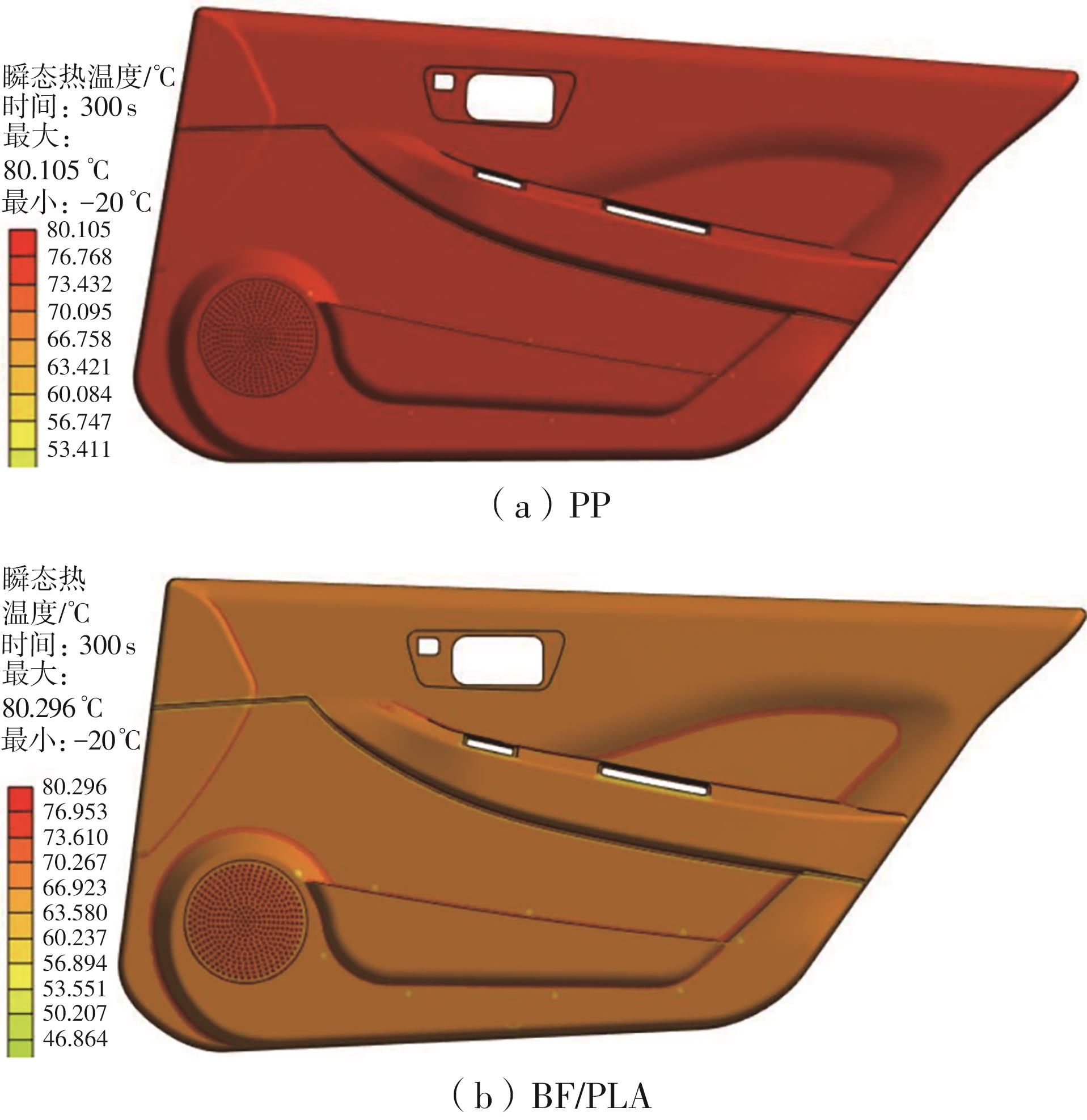 The traditional process of new material development, heavily reliant on extensive experimentation and empirical knowledge, suffers from low efficiency, prolonged cycles, and high costs. Integrating efficient experimental techniques with rapid computational simulation and prediction through intelligent methods can significantly shorten the R&D and engineering application cycle while reducing costs. Chopped basalt fiber-reinforced polylactic acid (BF/PLA) composites, being naturally green, environmentally friendly, and biodegradable, represent an ideal alternative material for automotive interior and exterior components with considerable development potential. In order to study the influence of different fiber parameter ratios on the thermal properties of BF/PLA composites and facilitate rapid development of suitable automotive component materials, this study first conducted experiments on the thermal properties of BF/PLA composites under various fiber parameter ratios. Through data correlation analysis, the effects of different fiber parameter ratios on composite thermal properties were examined. Using F-values from three-factor ANOVA, a fiber parameter quasi-centralization method was proposed, establishing fitted regression functions between glass transition temperature/crystallinity and centralized variables. Based on these regression functions and polynomial guiding functions, new ratios of fiber mass fraction, diameter, and length parameters were incorporated to obtain centralized variables for glass transition temperature and crystallinity under the new parameter ratios. The glass transition temperature and crystallinity of BF/PLA composites with new parameter ratios can be obtained by fitting regression function, and the thermal properties of composites with more fiber para-meter ratios can be predicted by fitting regression function, and the determination coefficients are 0.887 0 and 0.855 1 respectively, with prediction accuracy within practically acceptable engineering ranges. Finite element analysis of thermal performance for a vehicle door inner panel demonstrated slightly superior thermal properties using the optimized composite material selected through the proposed method, along with significantly improved R&D efficiency, validating the effectiveness of the approach. This provides important theoretical guidance and methodological reference for rapid development, cost reduction, material substitution, and green design of future automotive composites.