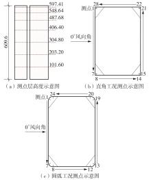 Key words: CAARC standard model, wind loads, rounded corner, rough strips, wind tunnel test