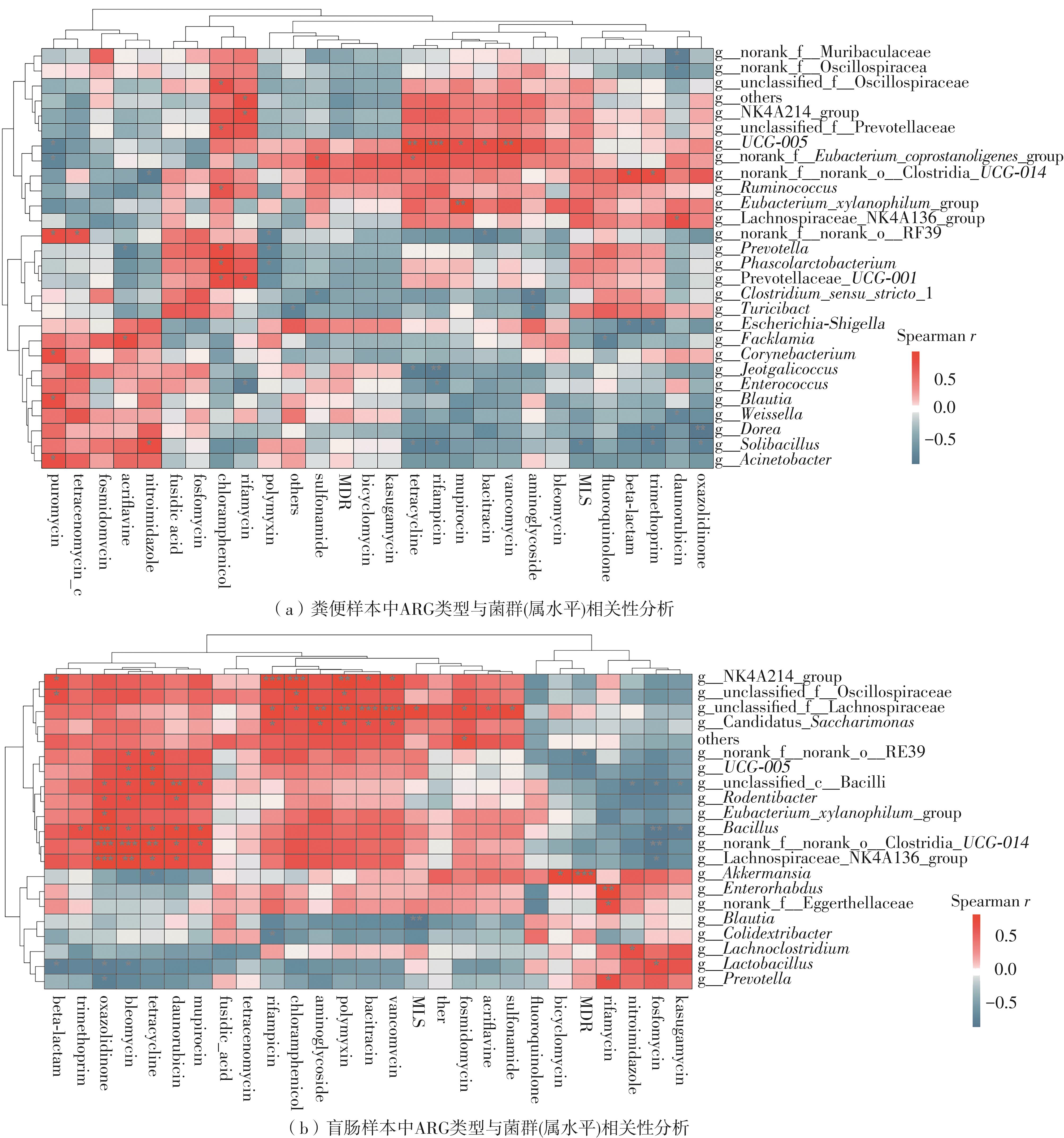 To investigate the impact of the antidepressant bupropion hydrochloride on the gut microbiome resistome, this study employed Sprague-Dawley (SD) rats as model organisms. Using both 16S rRNA amplicon sequencing and metagenomic sequencing approaches, it systematically analyzed the drug’s effects on microbial communities and their resistome profiles in both fecal and cecal contents. Furthermore, it conducted comprehensive correlation analyses to elucidate potential relationships between these alterations. The results show that prevalent types of ARGs in the feces and cecum samples include bacitracin, tetracycline, vancomycin, and macrolides-lincomycin-streptogramin (MLS). Compared to the control group (HC), the bupropion hydrochloride gavage intervention group (Bup-PO) shows increased total abundance of bacterial antibiotic resistance genes (ARGs) in both fecal and cecal content samples, with statistically significant differences observed only in fecal samples. In terms of ARG types, the Bup-PO group demonstrates significantly increased relative abundance of six antibiotic resistance gene classes in fecal samples compared to the HC group, including: aminoglycoside resistance genes, bacitracin resistance genes, mupirocin resistance genes, rifamycin resistance genes, tetracycline resistance genes, Vancomycin resistance genes. Notably, the treatment group also shows an expansion in the diversity of vancomycin resistance gene variants. In cecum samples, the Bup-PO group significantly increases the relative abundance of 3 resistance gene types, tetracycline, daunorubicin, and fosfomycin. On ARG subtypes, in fecal samples, compared to the HC group, the Bup-PO group significantly increases the relative abundance of vancomycin (vanAG, vanRI, vanSA, vanSI), tetracycline (tetM, tetO, tet32), bacitracin (bceA, bcrA) and rifampicin (rpoB) resistance genes. In cecum samples, the effect of gavage bupropion on ARGs differs from that in fecal samples, with gavage intervention of bupropion causing fluctuations in the relative abundance of the MLS class of resistance genes, decreasing the abundance of lmrB but increasing the abundance of macB. Concurrently, bupropion hydrochloride intervention via oral gavage significantly increased the relative abundance of tetracycline (tetW) and daunorubicin (drrA) resistance genes. The above results suggest that bupropion intervention has the risk of increasing antibiotic resistance in rat’s gut microbiota. UCG-005 and norank__f__norank__o_Clostridia_UCG-014 are the major bacterial genera of the rat intestinal flora, and correlation analyses suggest that UCG-005 may be a potential host for tetracycline, rifampicin, mupirocin, and bacitracin, vancomycin resistance genes, while norank_f__norank__o_Clostridia_UCG-014 may be a potential bacterial host for daunorubicin resistance genes, and their increase after bupropion intervention may be responsible for the increased abundance of these six types of resistance genes.